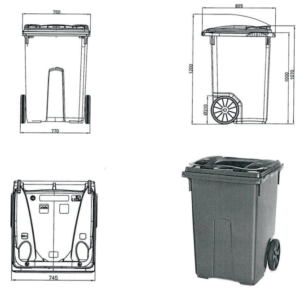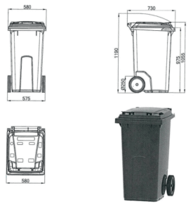 Standardløsning for oppsamling av avfall er plastdunker på hjul i størrelsesorden 140-660 liter. For matavfall og glass- og metallemballasje er største tilgjengelige volum 240 liter. Plastemballasje skal samles i egen sekk.